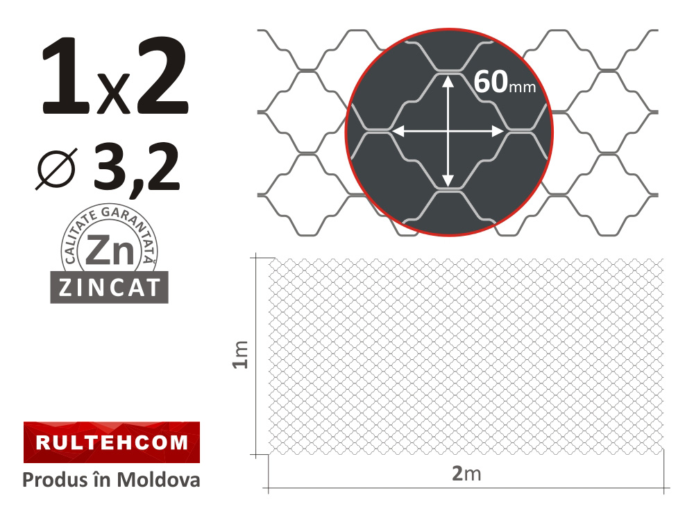 Plasă decorativă zincată 60x60mm D-3,2mm 1х2m