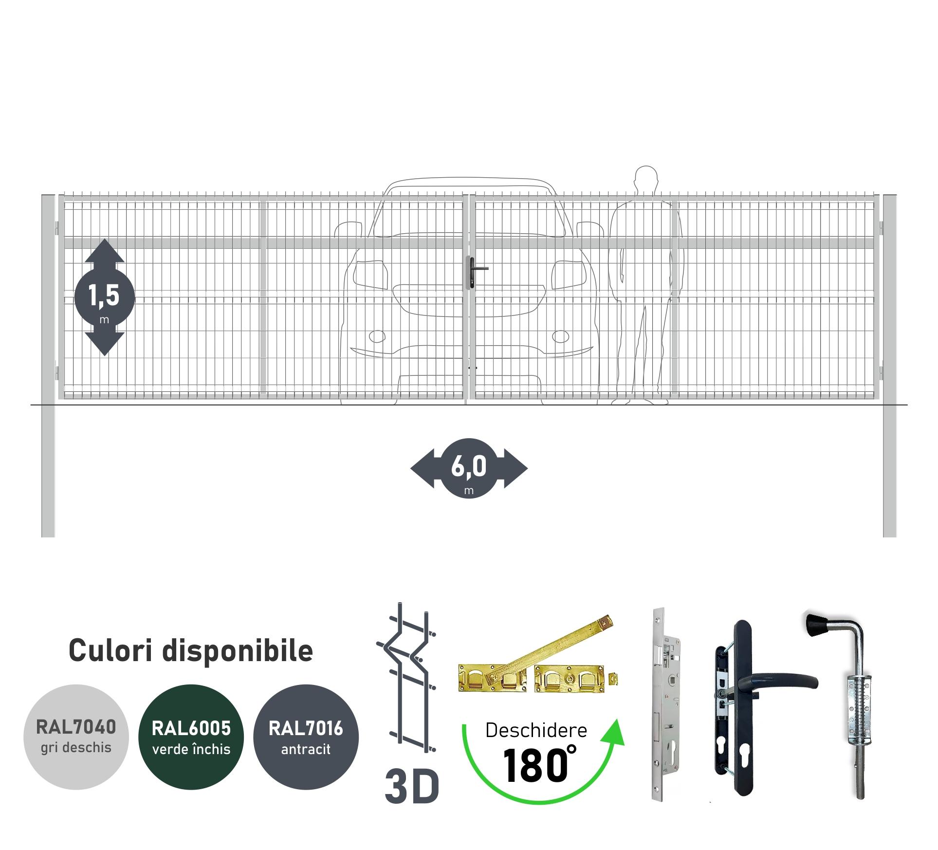 Poarta auto batanta OPTIMA 3D H-1,5m L-6,0m (D100) RAL7040