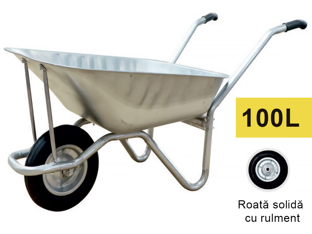 Roaba 100L (zinc) cu roată solidă cu rulment