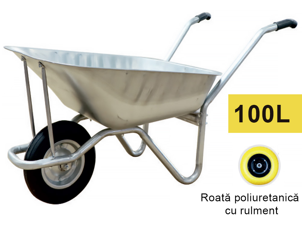 Roaba 100L (zinc) cu roată poliuretanică cu rulment