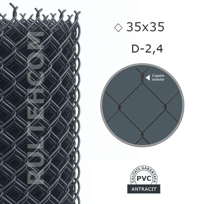 Сетка Рабица ПВХ 35х35 мм D-2,4 мм H-1,5 м RAL7016