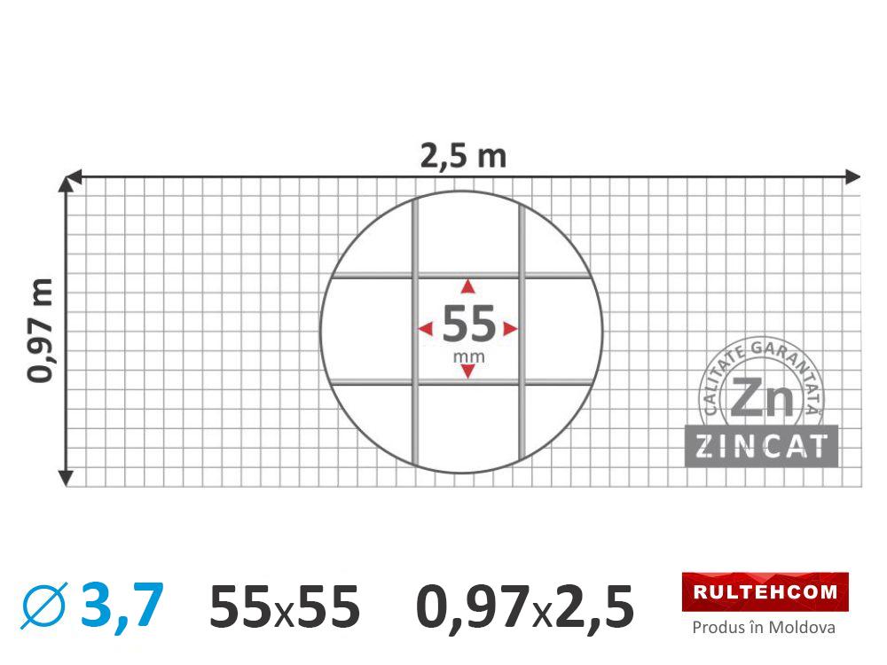 Сетка для габионов 55х55мм D-3,7мм 0,97х2,5м