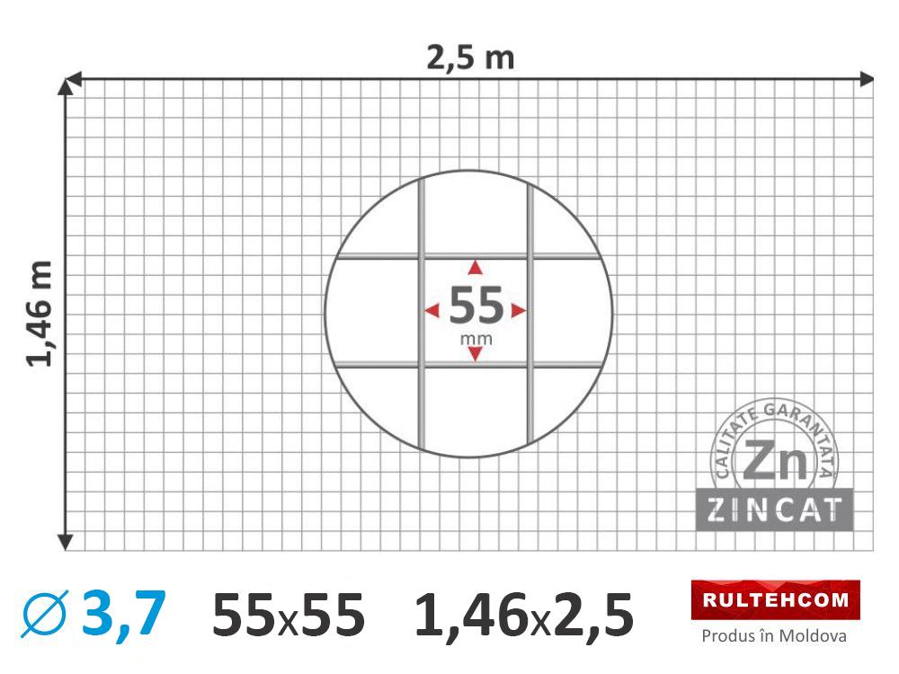 Сетка для габионов 55х55мм D-3,7мм 1,46х2,5м