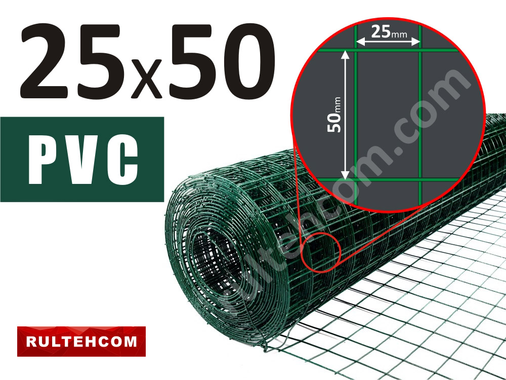 Сетка сварная оцинкованная c ПВХ 25х50 D-1,4 мм B-1 м L-30 м
