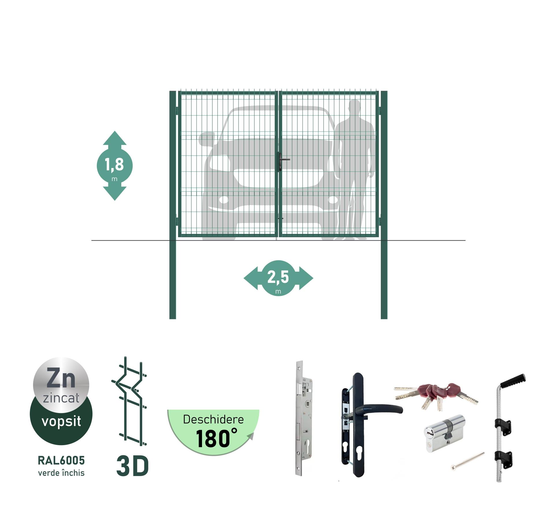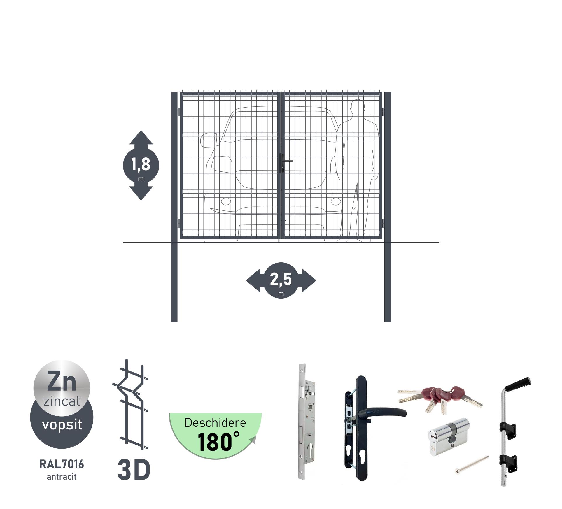 Ворота OPTIMA 3D H-1,8м L-2,5м (D80) RAL7040