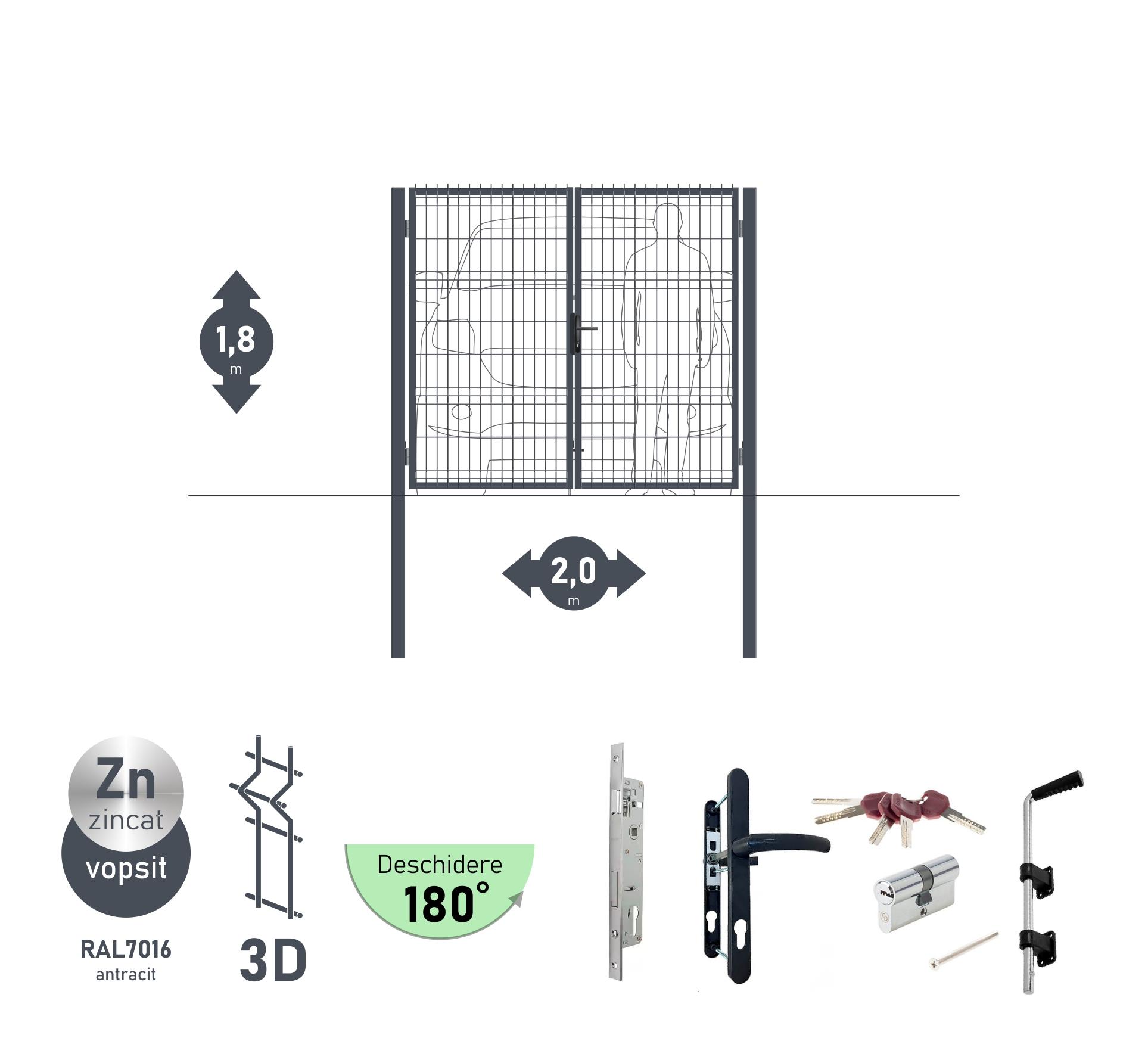 Ворота OPTIMA 3D H-1,8м L-2,0м (D80) RAL7040