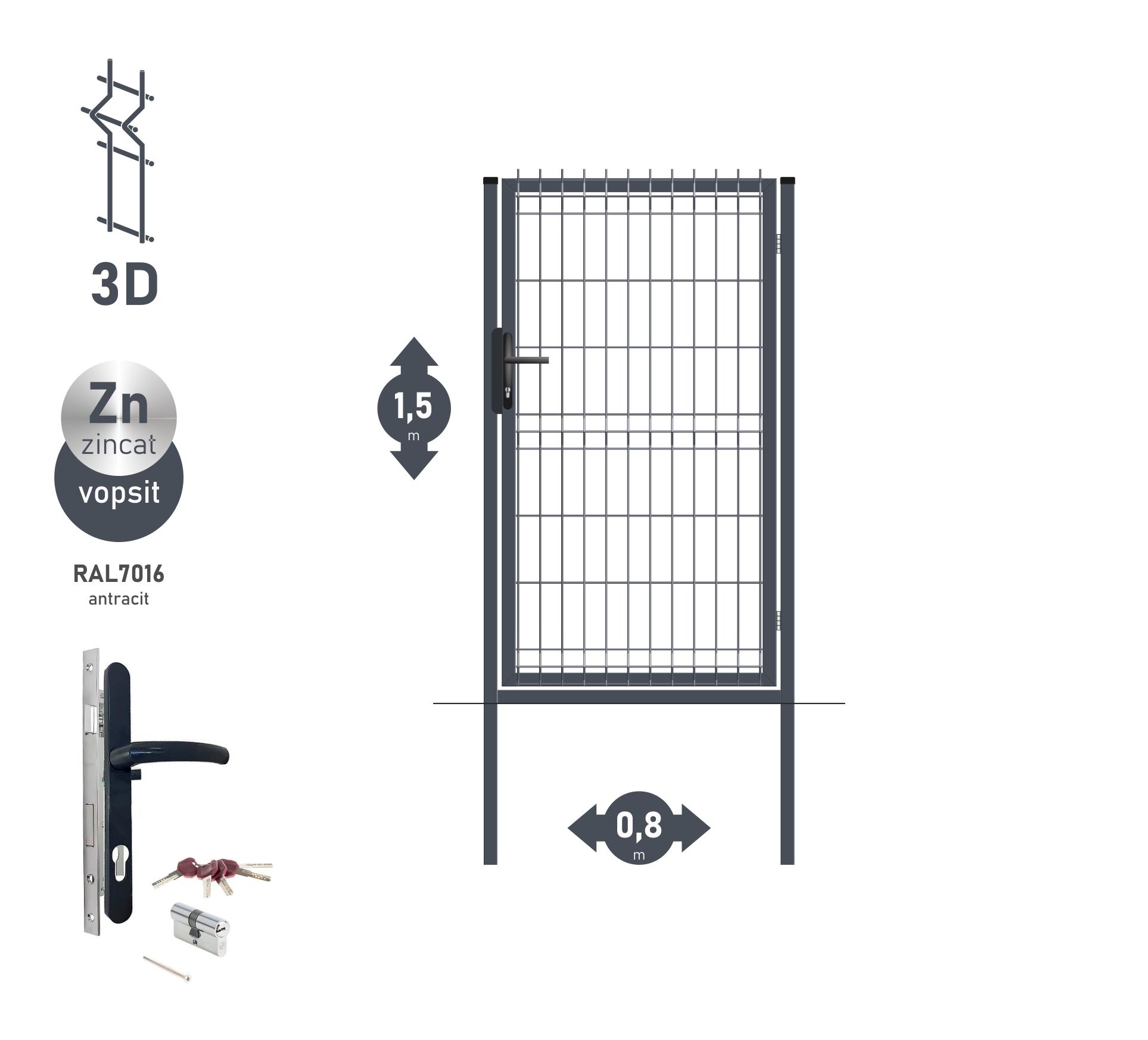 Калитка OPTIMA 3D H-1,5м L-0,8м RAL7016