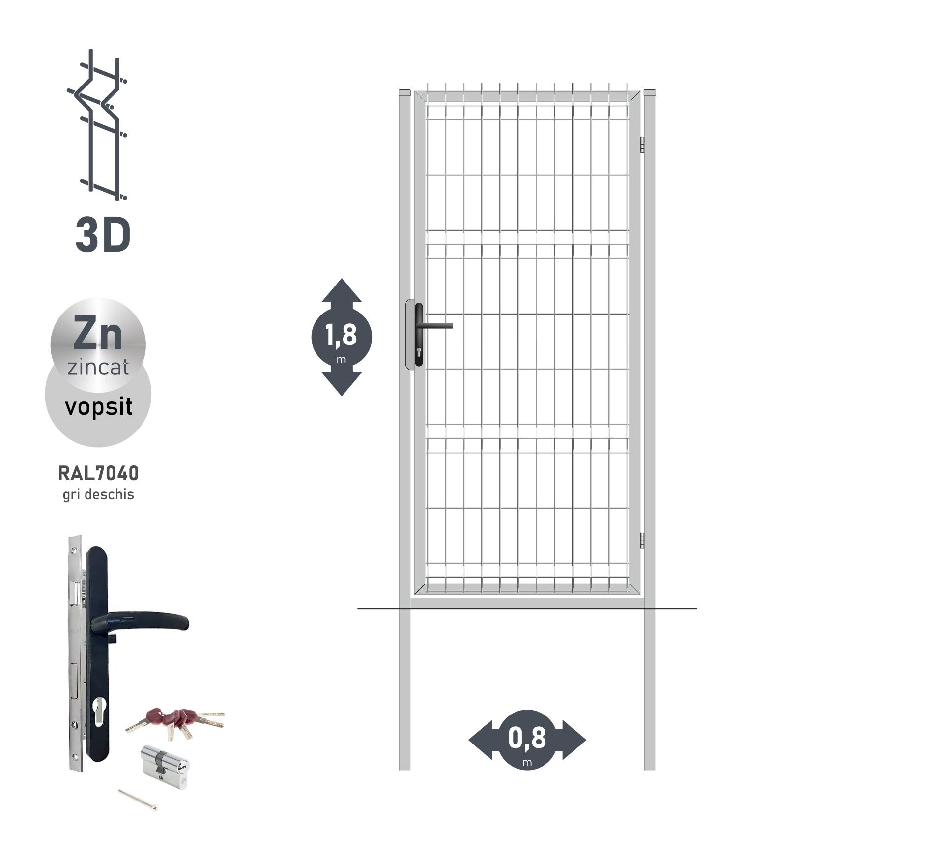 Калитка OPTIMA 3D H-1,8м L-0,8м RAL7040