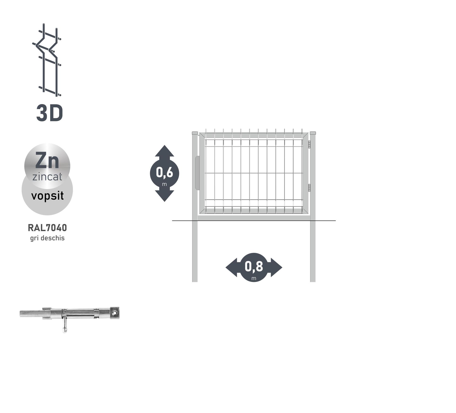 Калитка OPTIMA 3D H-0,6м L-0,8м RAL7040