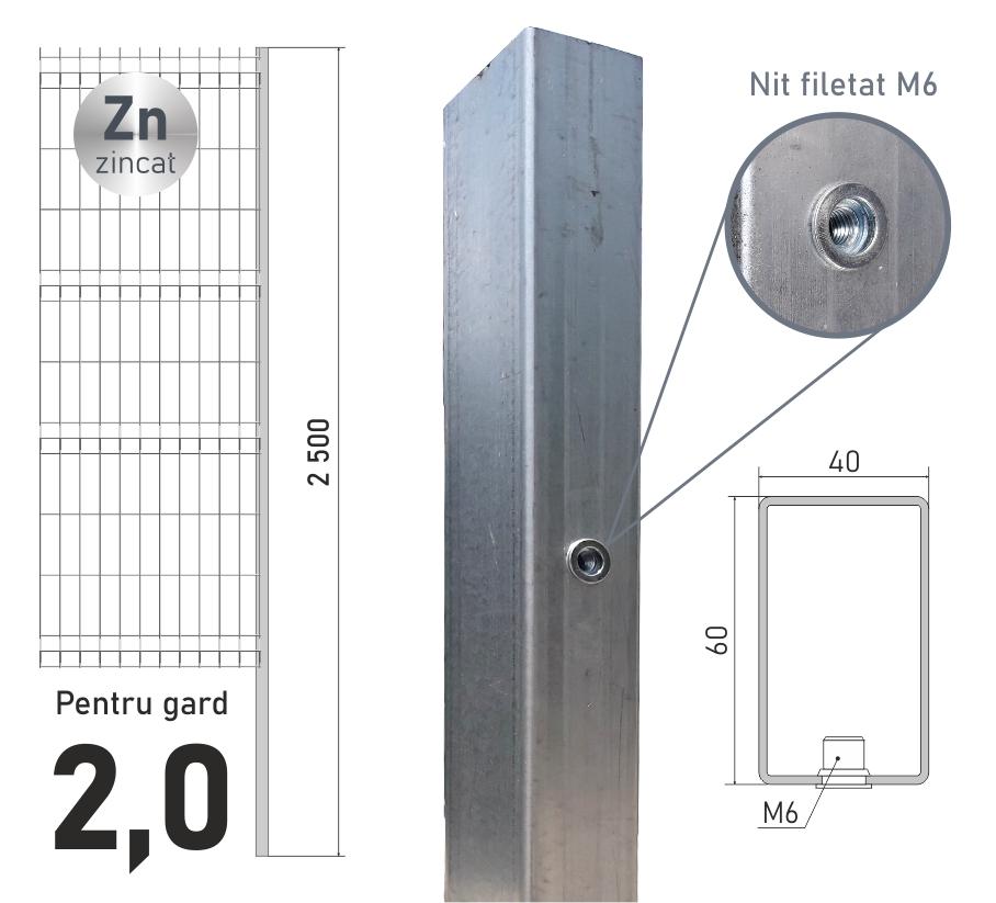 - Для забора / Длина столба H-2,0м / L-2,5м