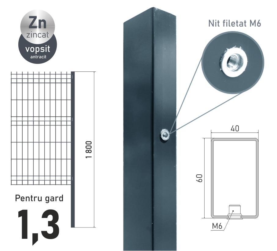 - Для забора / Длина столба H-1,3м / L-1,8м