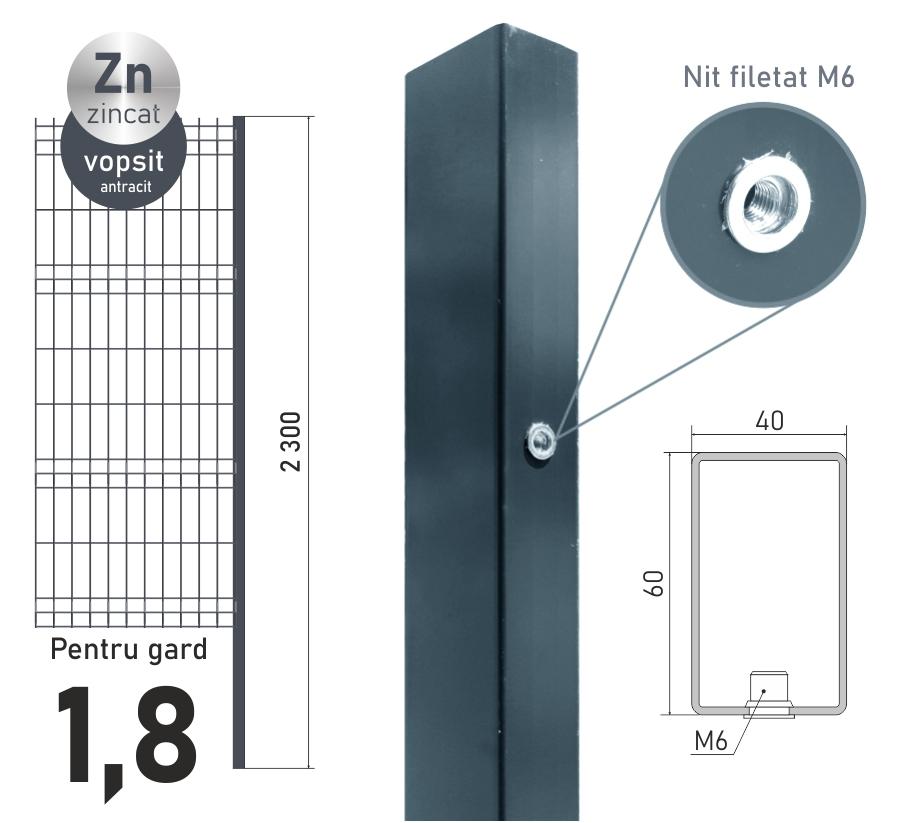 - Для забора / Длина столба H-1,8м / L-2,3м